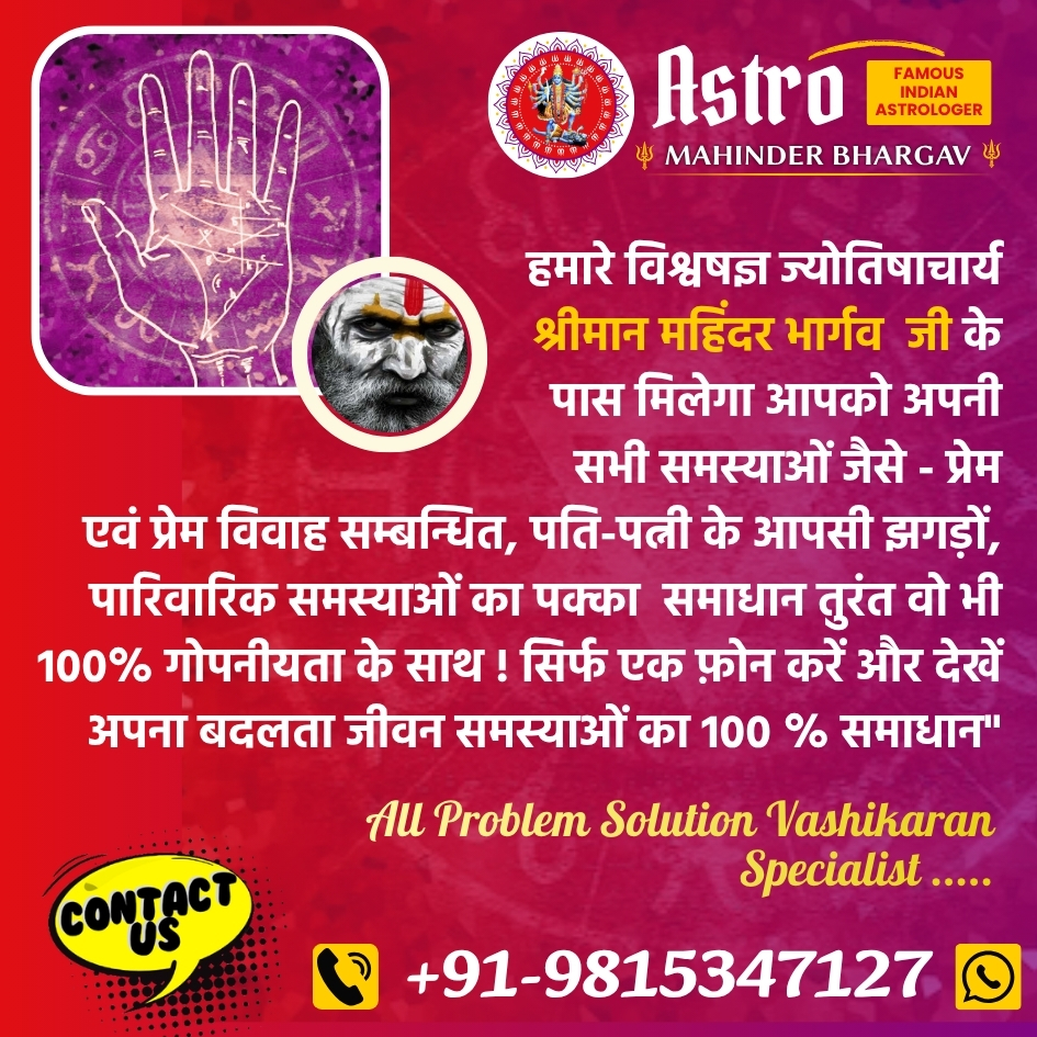 Astrologer Mahinder Bhargav Ji has his own astrology center in India, he provides his astrology solutions to people all over the world.